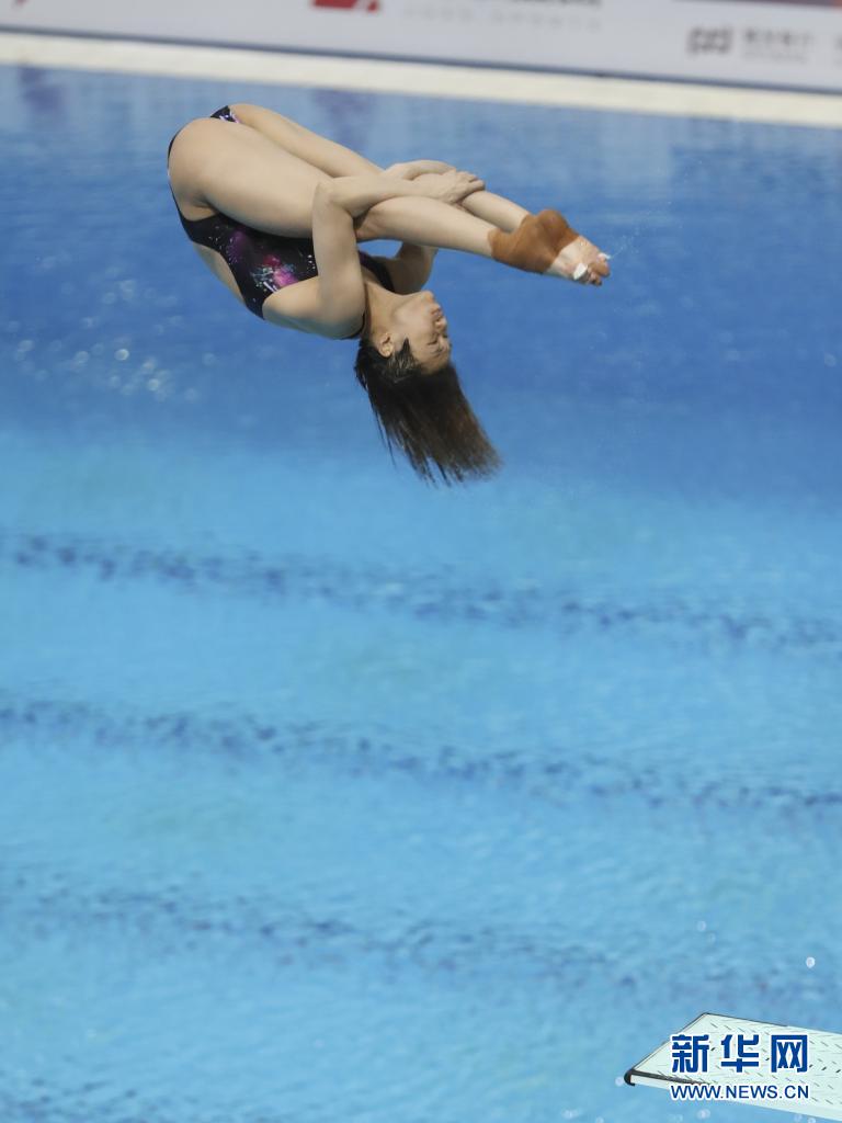 重庆队选手施廷懋在上海举行的2021年全国跳水冠军赛暨东京奥运会选拔赛女子3米跳板决赛中(2021年5月15日摄)。