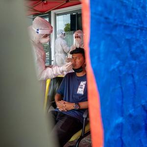 7月15日,医护人员在马来西亚雪兰莪州的沙阿兰准备新冠病毒检测样本。