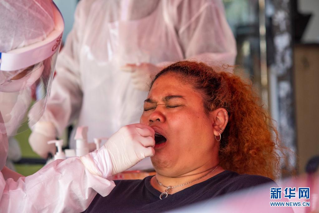 7月15日,医护人员在马来西亚雪兰莪州的沙阿兰为当地居民进行新冠病毒检测。