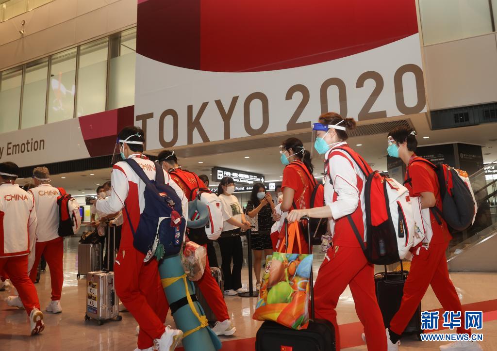 当日,参加东京奥运会的中国体育代表团部分成员抵达东京。
