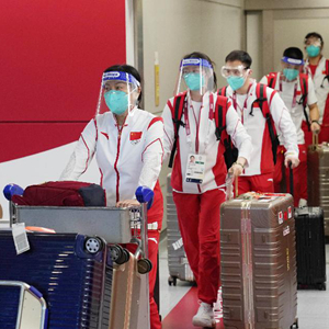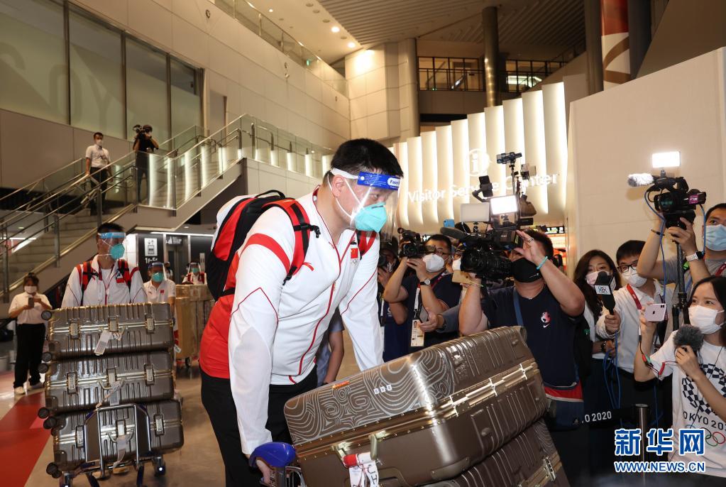 当日,参加东京奥运会的中国体育代表团部分成员抵达东京。