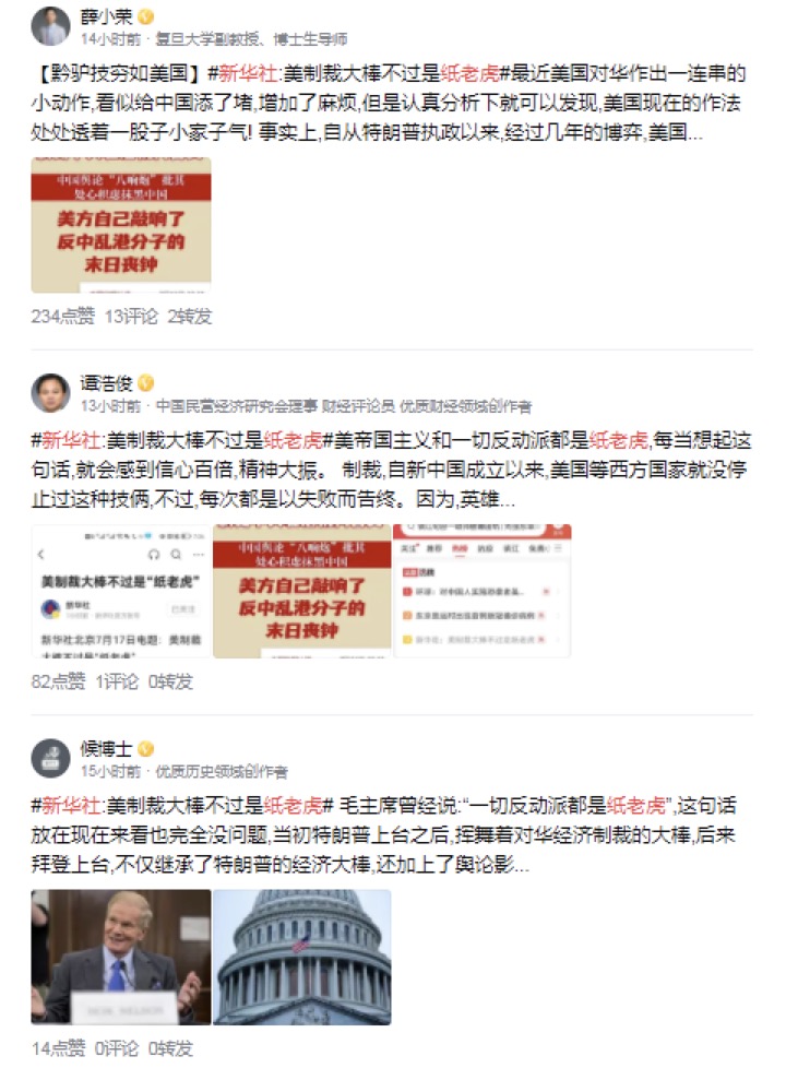 新华社两篇批美评论同时现身热搜榜,一篇戳穿换汤不换药的“特朗普主义”,一篇专打美国干涉我内政、非法制裁我驻港官员。