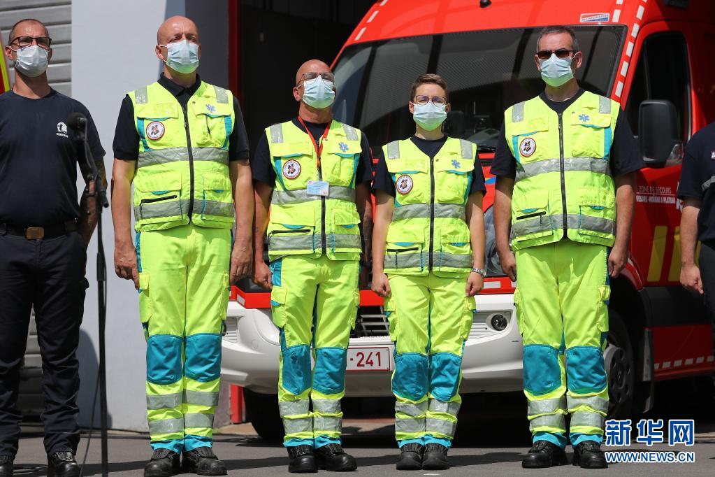 7月20日,救护队员在比利时南部城市韦尔维耶出席悼念仪式。