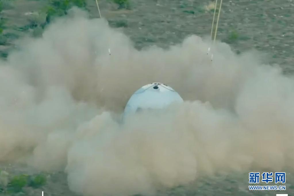 这张美国蓝色起源公司7月20日发布的视频截图显示“新谢泼德”飞行器在美国得克萨斯州西部着陆。