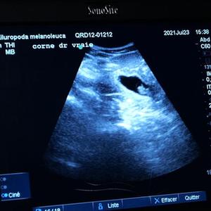 7月23日,在法国中部的圣艾尼昂市博瓦勒野生动物园,工作人员为大熊猫“欢欢”做超声波检查。