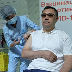 7月23日,吉尔吉斯斯坦总统扎帕罗夫在首都比什凯克接种中国国药新冠疫苗。