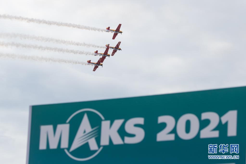 7月25日,在俄罗斯首都莫斯科附近的茹科夫斯基市,“首航”飞行表演队进行表演。