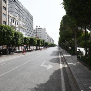 7月25日,突尼斯警察封锁首都突尼斯市中心路口并查验路人身份。