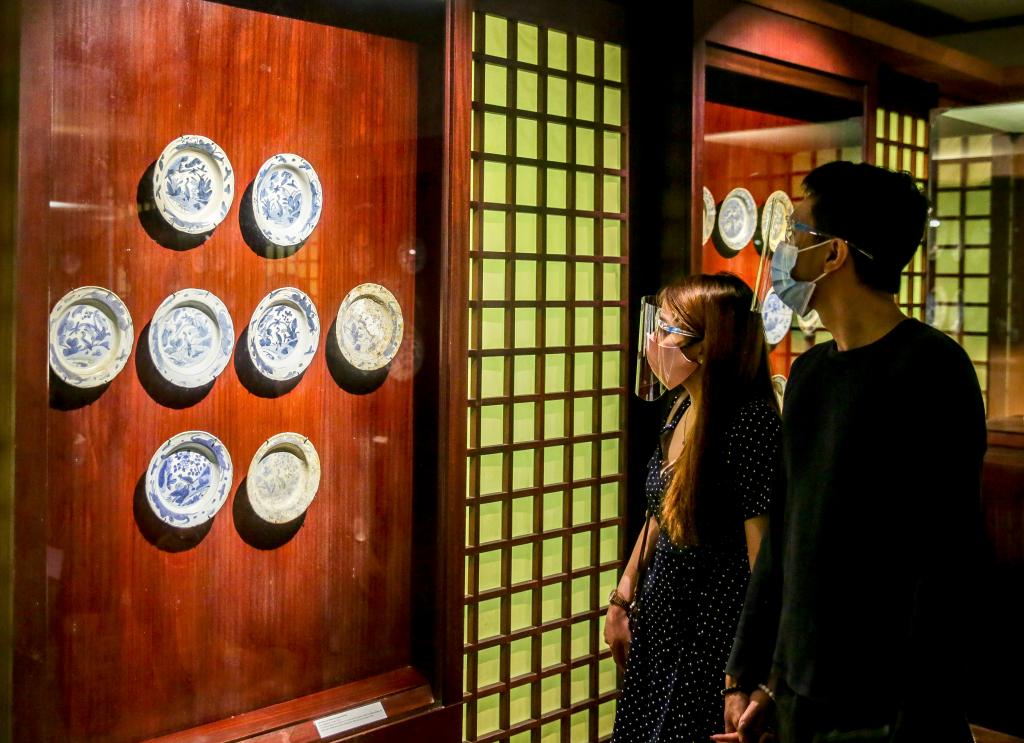 7月21日,游客在菲律宾国家人类学博物馆观赏中国陶瓷藏品。新华社发