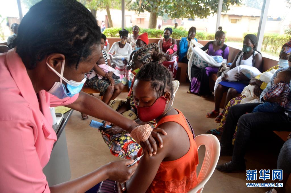 7月28日,在乌干达坎帕拉,一名医务人员为一名女子接种乙肝疫苗。
