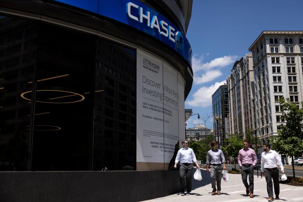 5月27日,行人走过美国首都华盛顿街头的一家银行。新华社发(沈霆摄)