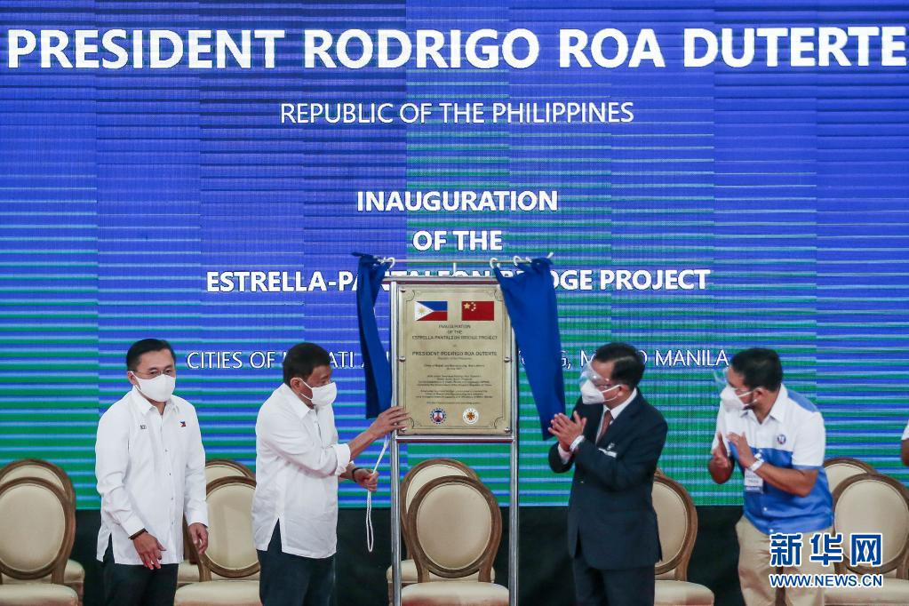 中国援菲跨河公路桥项目埃斯特雷利亚—潘塔莱翁桥通车仪式29日在菲律宾首都马尼拉举行。菲律宾总统杜特尔特出席仪式时感谢中方无私援助,认为这一项目将进一步巩固菲中友好关系。新华社发(乌马利摄)