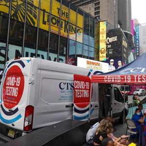7月20日,工作人员在美国纽约时报广场的一个移动新冠检测点工作。(新华社记者王迎摄)