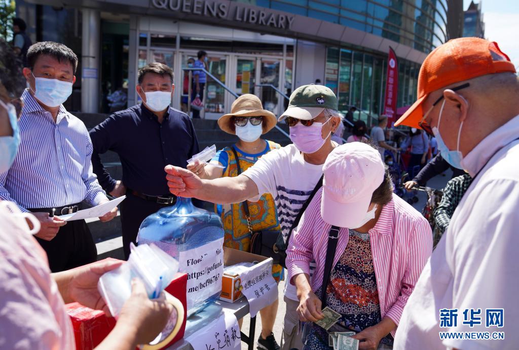 7月31日,人们在美国纽约法拉盛街头为河南抗洪救灾募捐。