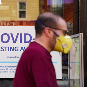 7月26日,行人从美国纽约一家药店的新冠检测广告牌旁走过。新华社记者 王迎 摄