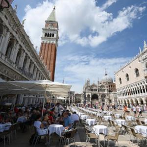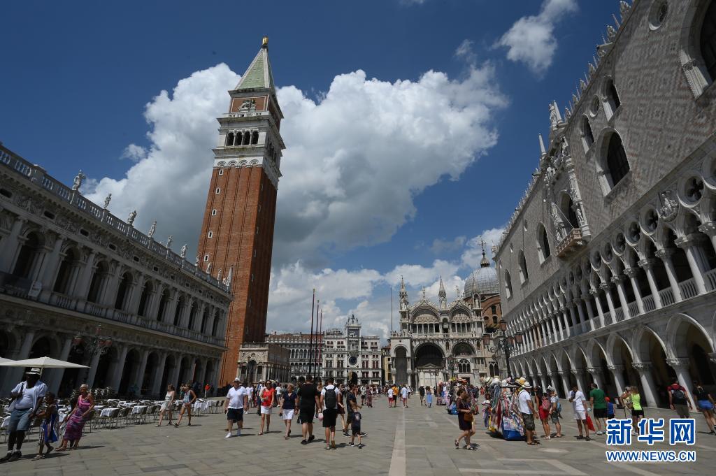8月3日,游客在意大利威尼斯的圣马可广场游览。