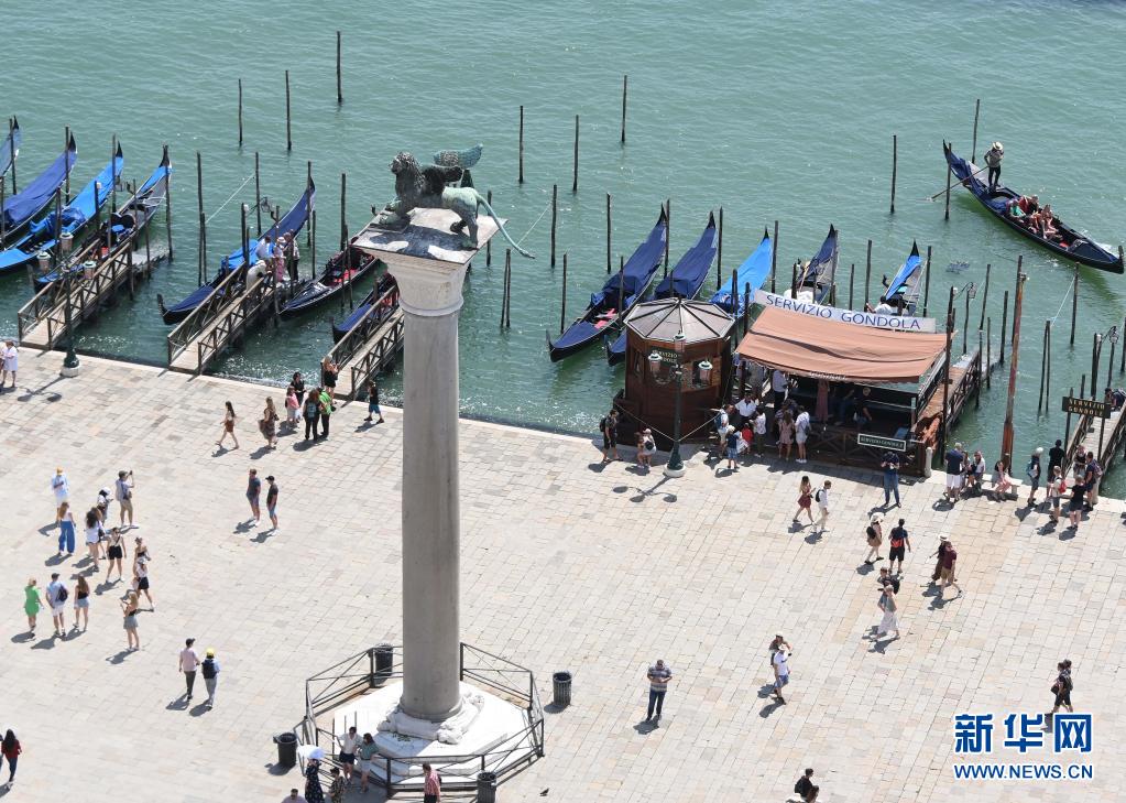 8月3日,在意大利威尼斯,“贡多拉”船停靠在岸边。