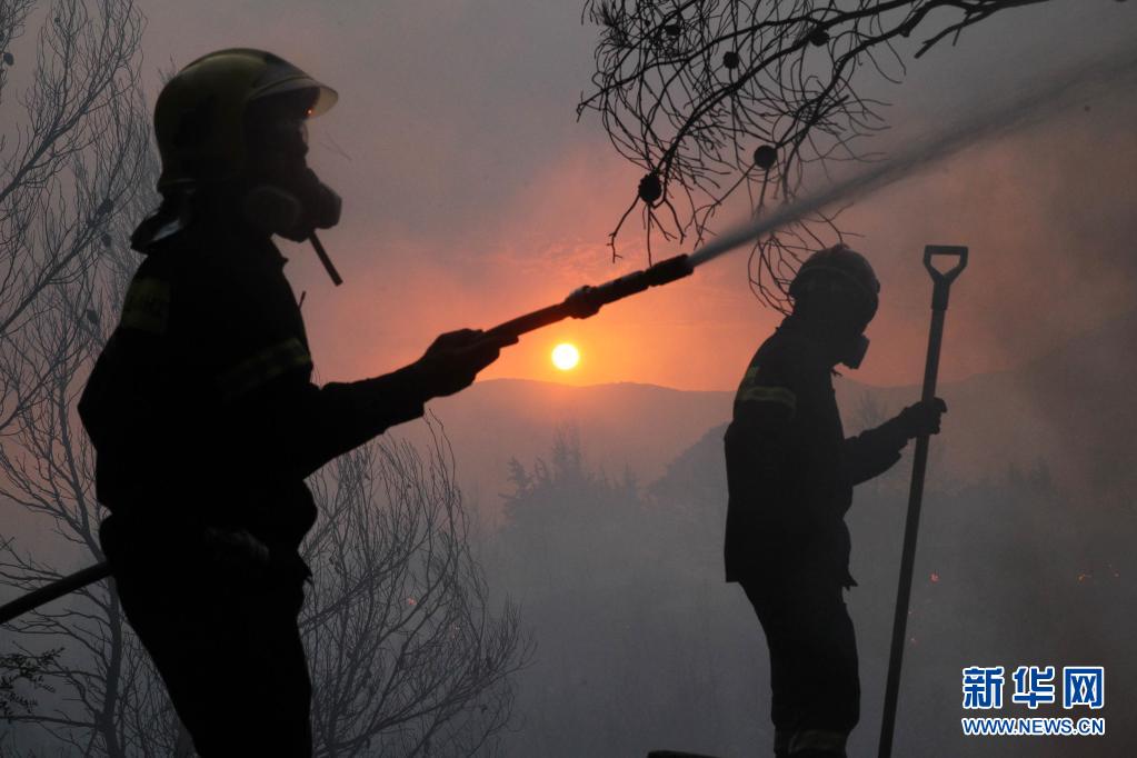 8月3日,消防员在希腊雅典北部郊区进行灭火作业。