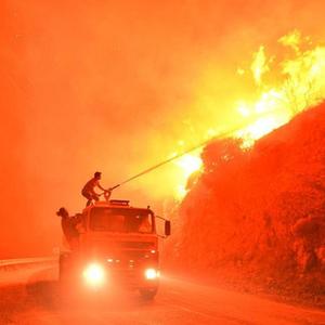8月6日,消防员在土耳其米拉斯附近参与灭火行动。