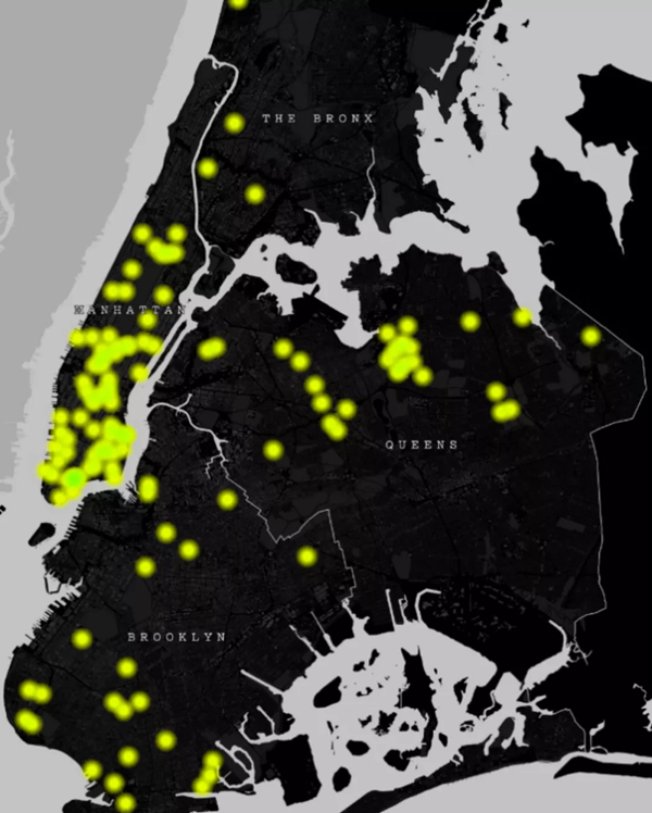 2020年2月至2021年4月美国纽约反亚裔案件热点图