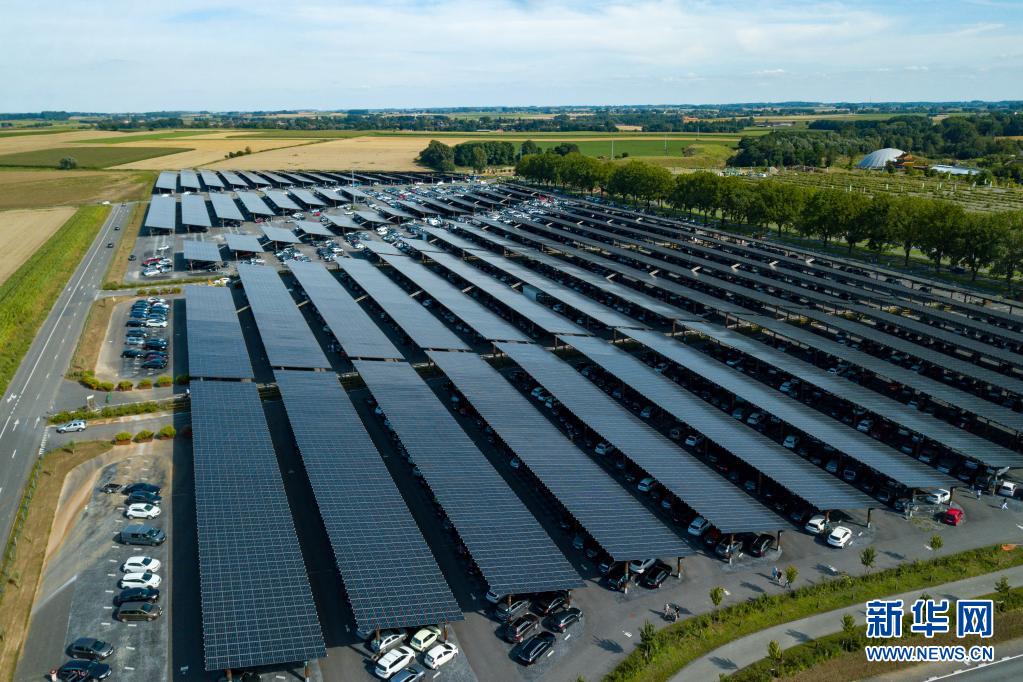 这是8月11日在比利时布吕热莱特拍摄的天堂动物园光伏停车场(无人机照片)。
