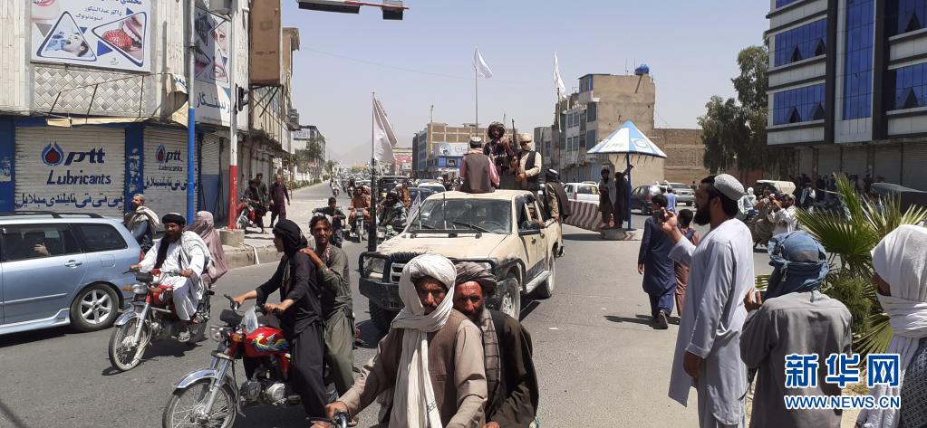8月13日,塔利班武装人员在阿富汗第二大城市坎大哈街头。新华社发