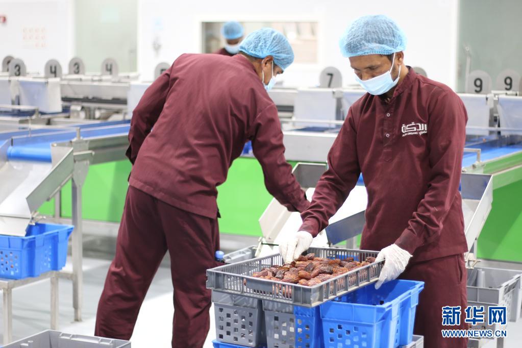 8月12日,工人在位于沙特阿拉伯加特的一家农场内的加工厂对完成初筛的椰枣进行分拣。