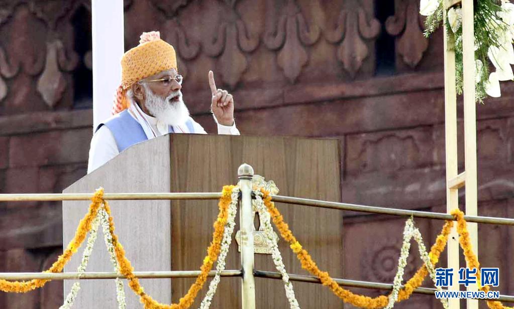 8月15日,印度总理纳伦德拉·莫迪在德里举行的独立日庆祝仪式上讲话。