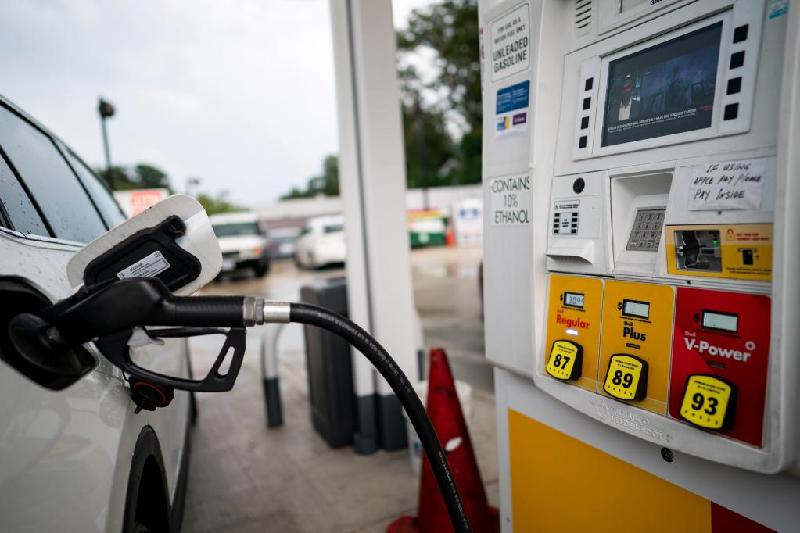 8月11日,汽车在美国弗吉尼亚州阿灵顿一座加油站加油。新华社记者刘杰摄