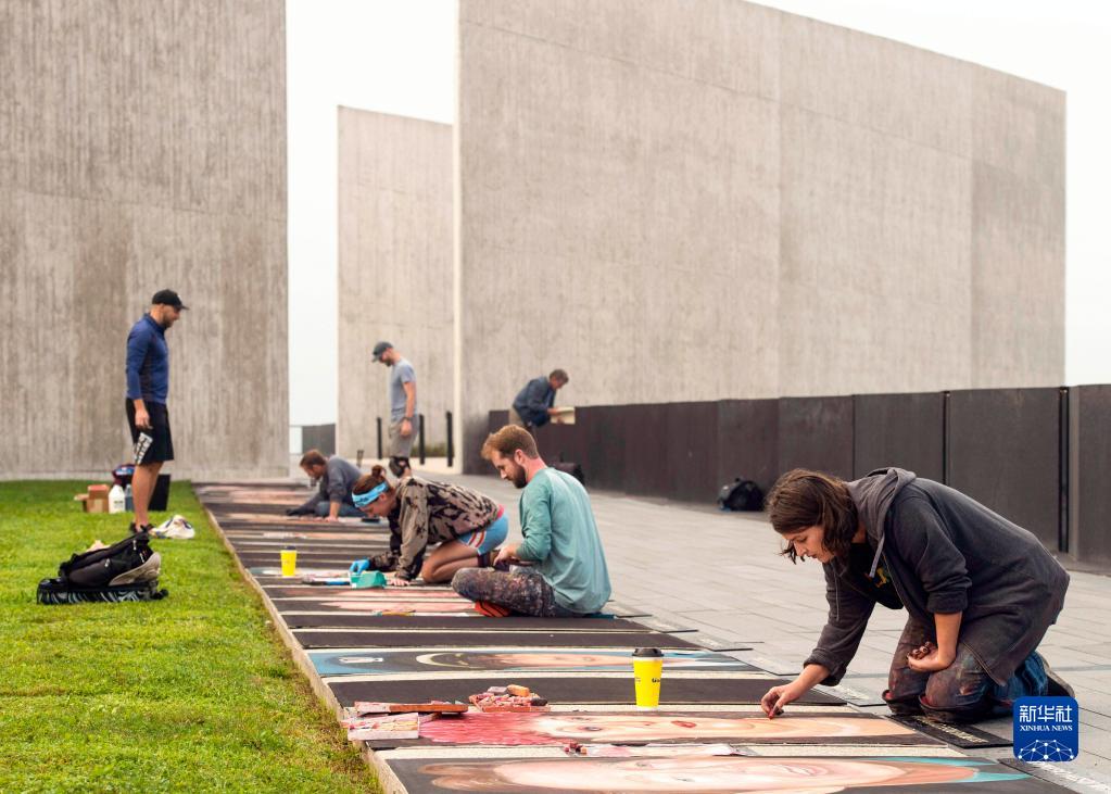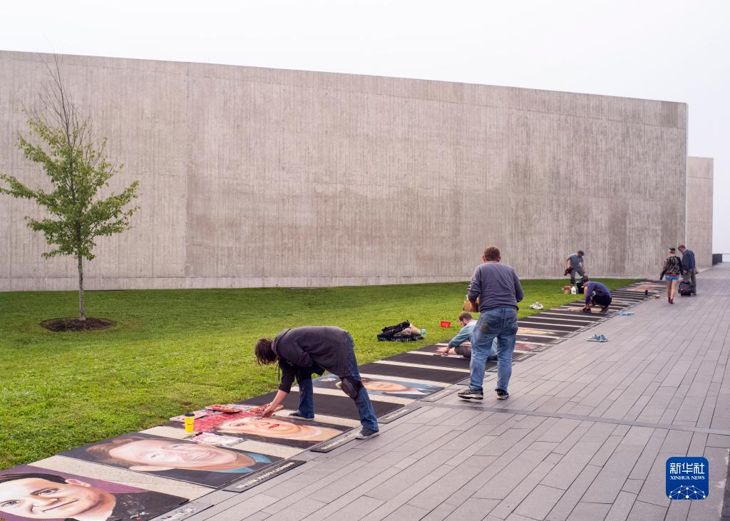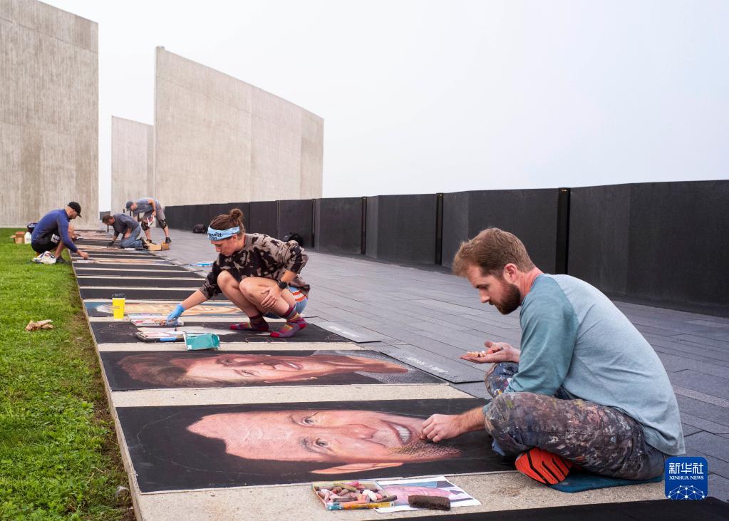 9月9日,在美国宾夕法尼亚州尚克斯维尔的93号航班国家纪念园,艺术家绘制遇难者画像。新华社发(纳特·斯莫尔伍德 摄)
