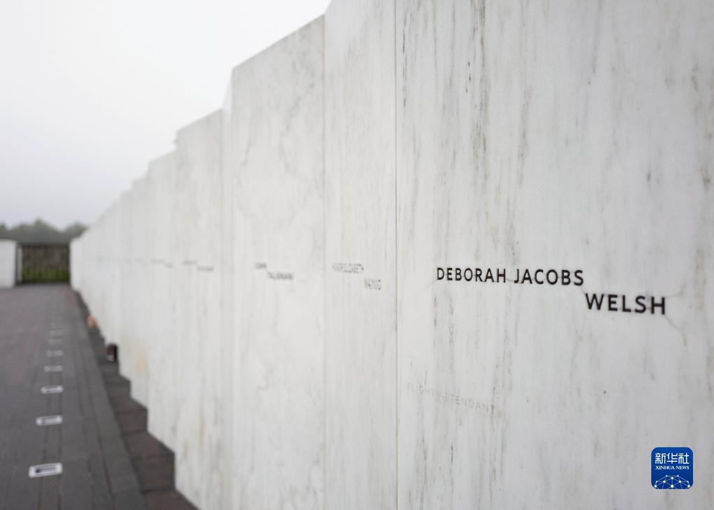 9月9日,在美国宾夕法尼亚州尚克斯维尔的93号航班国家纪念园,墙上刻有遇难者的名字。新华社发(纳特·斯莫尔伍德 摄)