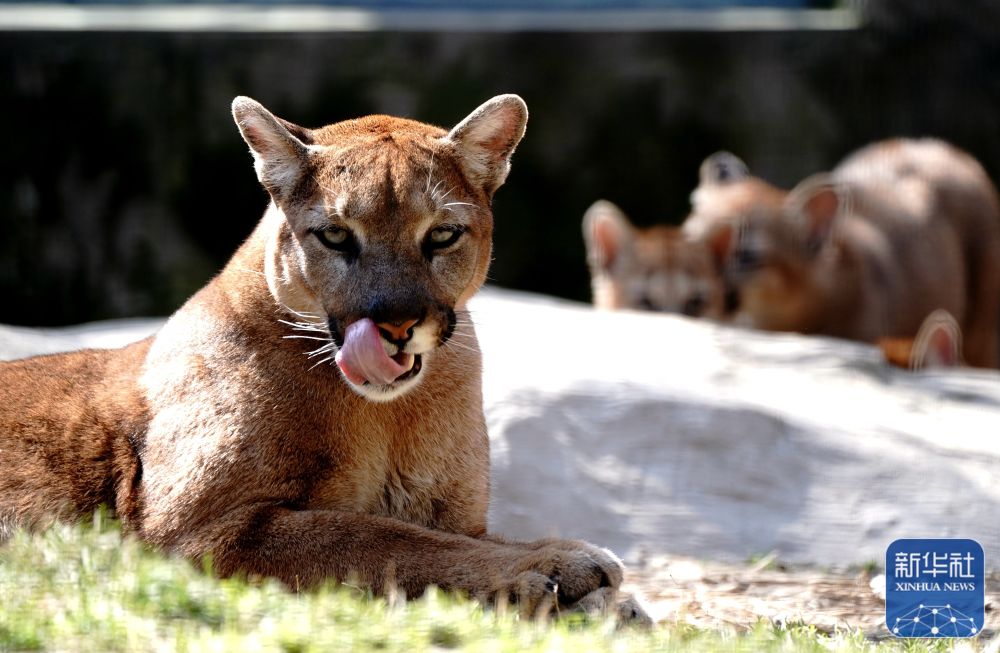 ↑这是2021年2月20日在上海动物园拍摄的美洲狮一家。新华社记者张建松摄