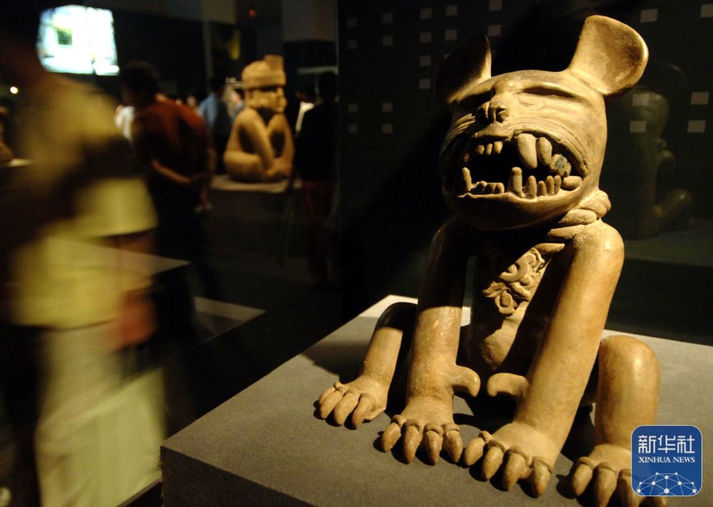 ↑2006年7月15日,“美洲豹崇拜——墨西哥古文明展”在北京首都博物馆举办。新华社记者罗晓光摄