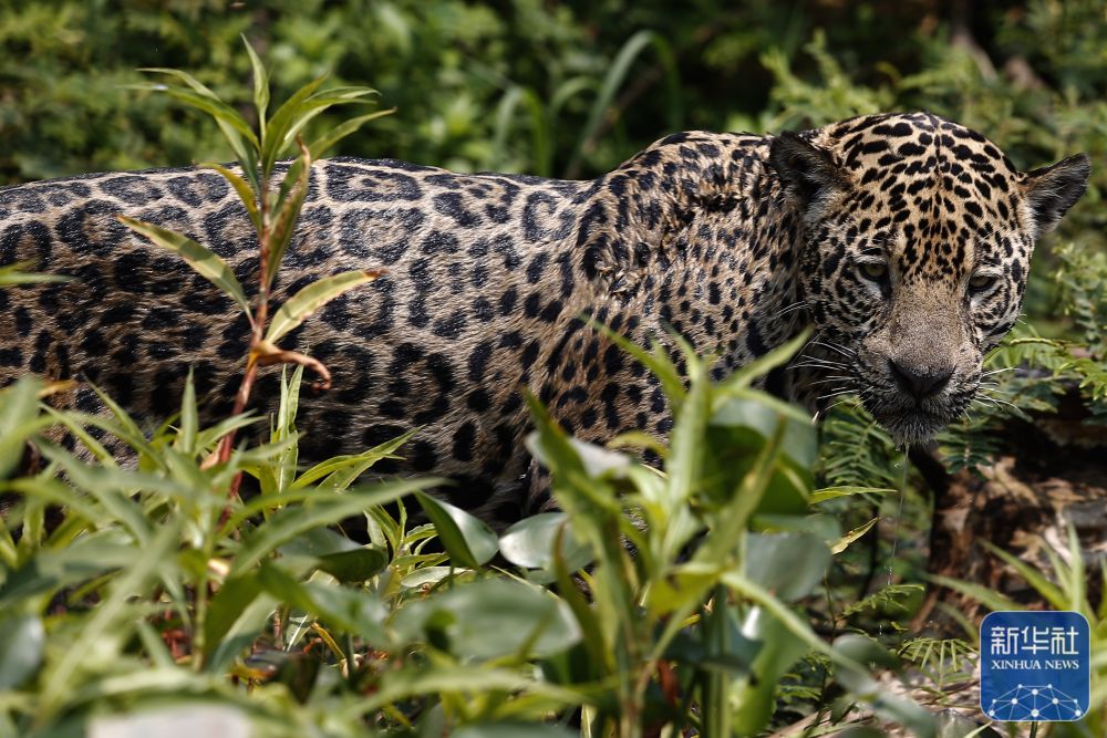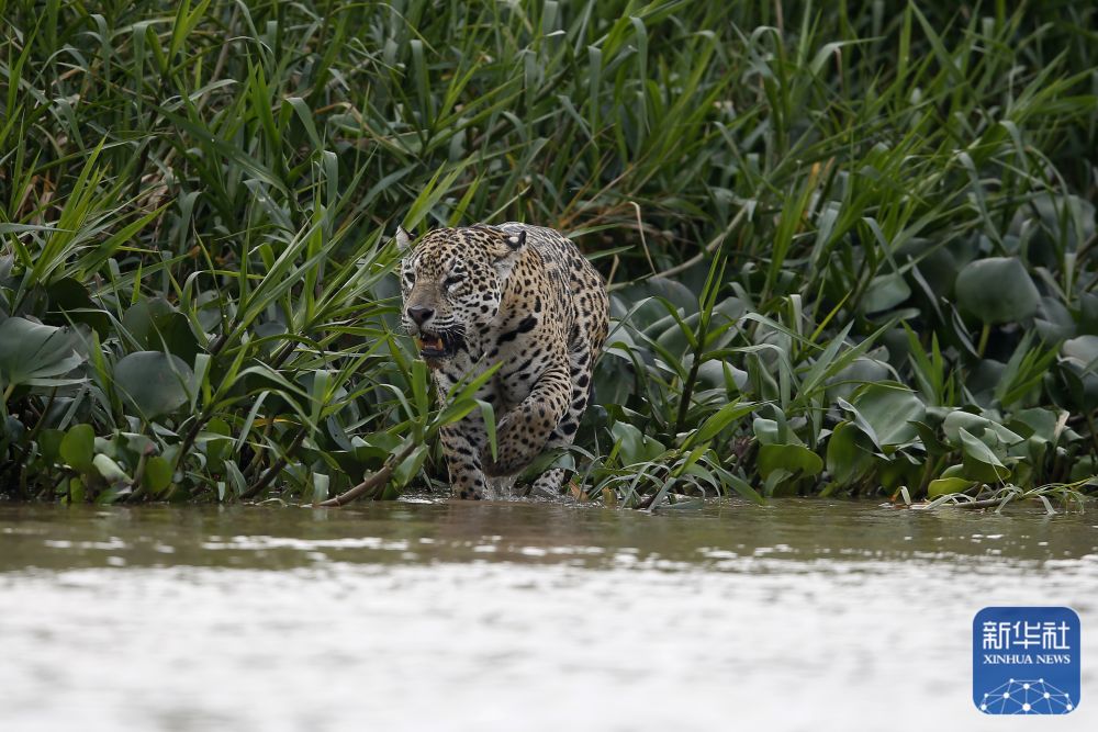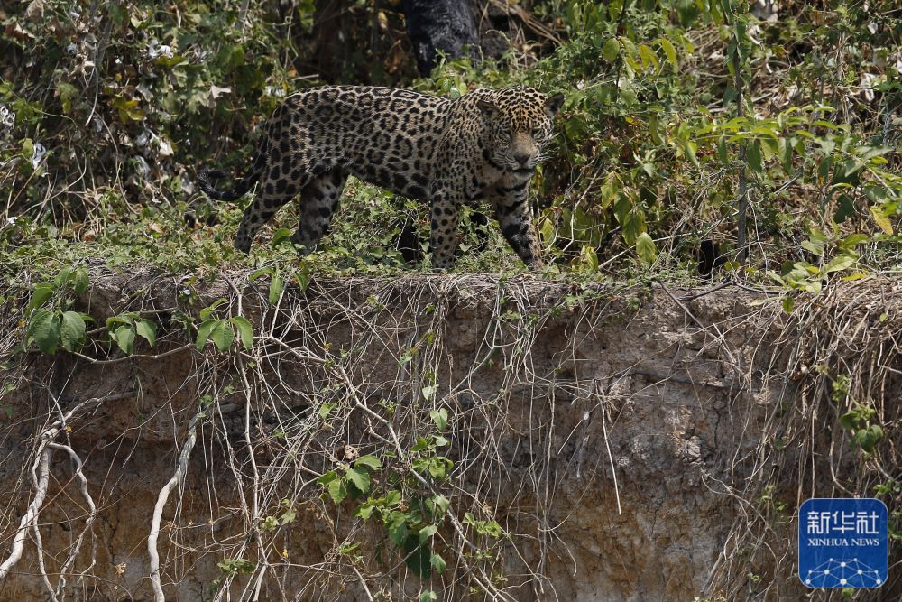 ↑2021年9月25日,一只美洲豹在巴西潘塔纳尔湿地的丛林中。新华社发(卢西奥·塔沃拉摄)