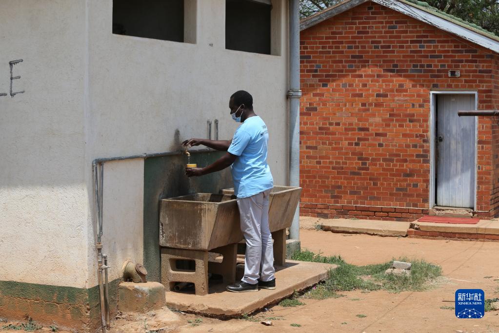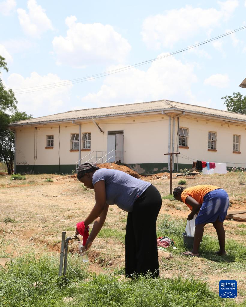 11月3日,在津巴布韦南马塔贝莱兰省埃斯戈迪尼地区医院,工作人员接水。新华社发(陈雅琴摄)
