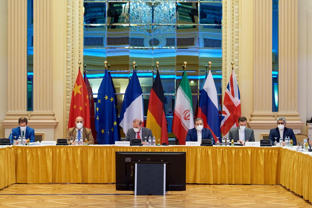 6月20日在奥地利维也纳拍摄的伊核协议联合委员会政治总司长级会议现场。当日,伊朗核问题全面协议相关方就美伊恢复履约问题在维也纳结束第六轮会谈。(新华社发,欧盟驻维也纳代表团供图)