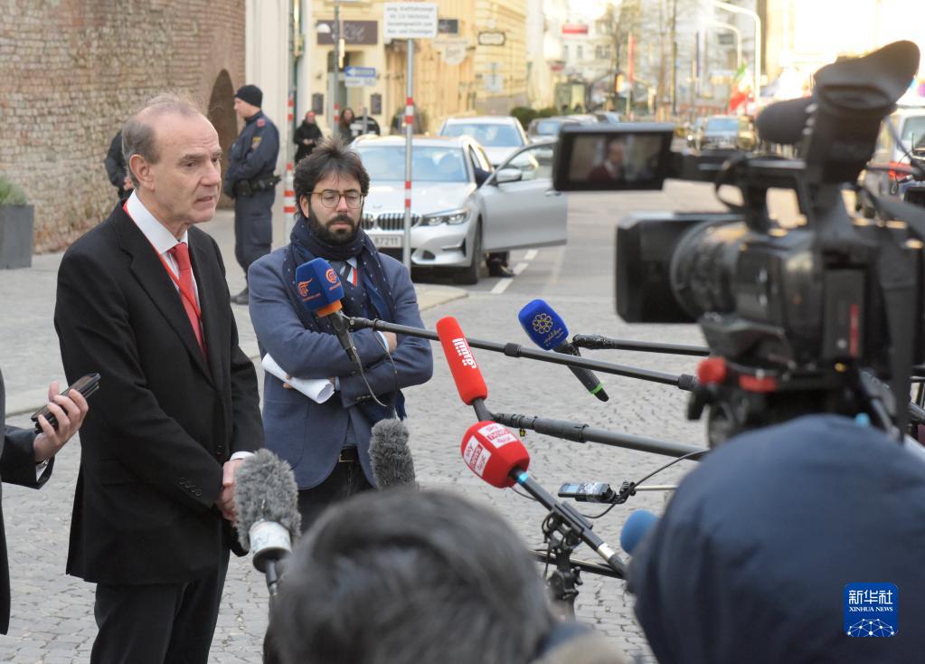 12月3日,在奥地利维也纳,欧盟对外行动署副秘书长莫拉(左一)在伊朗核问题全面协议联合委员会政治总司长级会议后接受采访。(新华社记者郭晨摄)