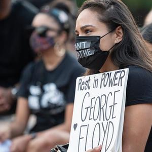 2021年5月25日,人们在美国华盛顿白宫附近参加悼念弗洛伊德的集会。当日是非洲裔美国人乔治·弗洛伊德遭明尼苏达州白人警察“跪颈”执法致死一周年,美国多地举行悼念活动。(新华社记者刘杰摄)