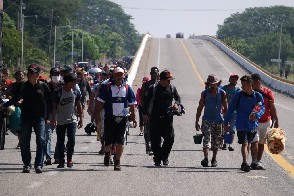 11月12日,在墨西哥瓦哈卡,试图北上前往美国的移民走在一条公路上。新华社发(丹尼尔·里卡德斯摄)