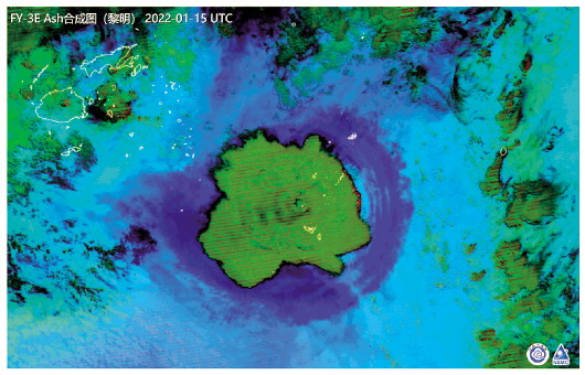 ▲这是中国气象局提供的1月15日风云三号E星多通道合成图。图中显示,汤加火山喷发时形成的火山灰蘑菇云纹理结构清晰可见,形成直径近500公里的伞形云团,伞形云团周边出现环状的冲击波,向四周扩散。新华社发(中国气象局供图)
