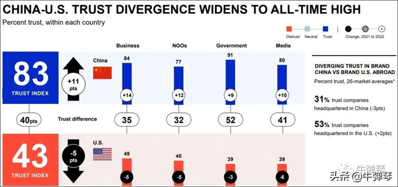 很有意思的是,这份报告还特意搞了一个中美信任度对比。