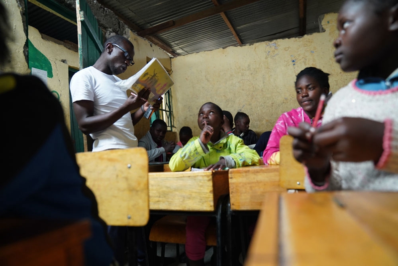 4月28日,在位于肯尼亚内罗毕马萨雷一所小学,一名教师在教室授课。新华社记者董江辉摄
