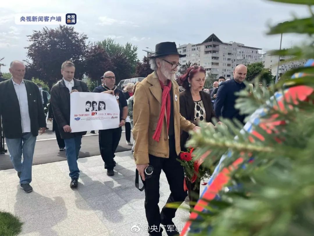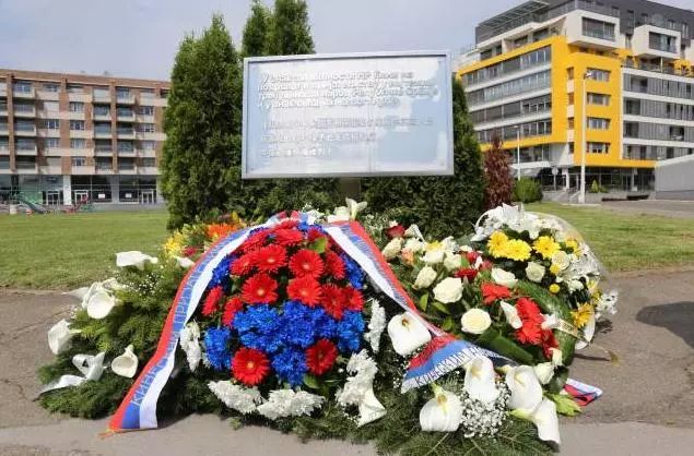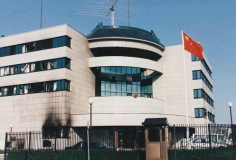 在我驻南联盟使馆旧址前举行凭吊仪式
