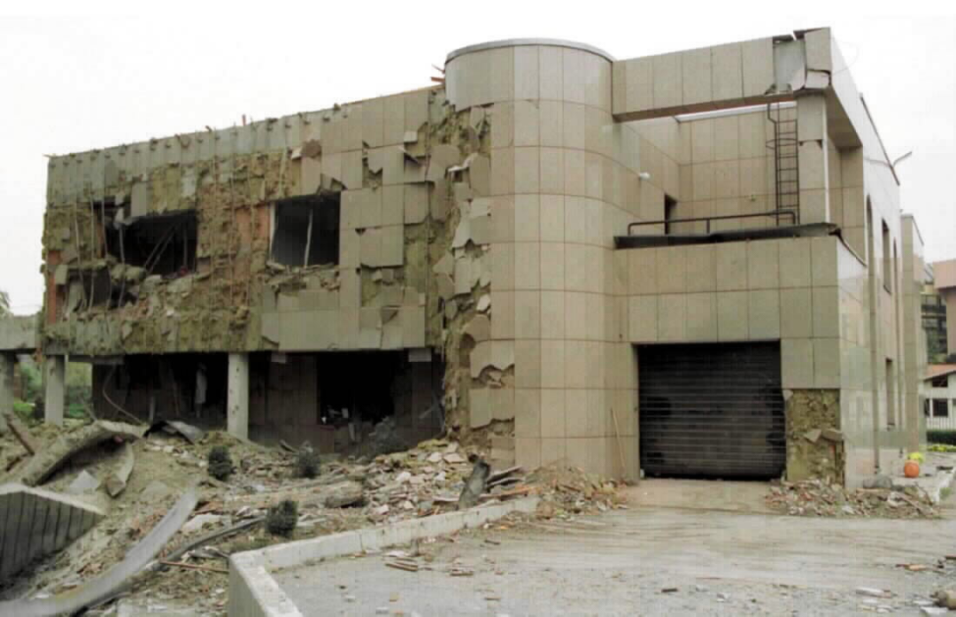 图为坐落在中国驻南联盟大使馆院内的大使官邸被北约导弹毁坏后的惨状。新华社记者黄文摄
