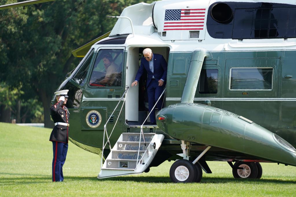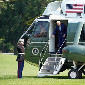2021年7月25日拍摄的资料照片显示,美国总统拜登抵达华盛顿白宫。新华社发(沈霆摄)