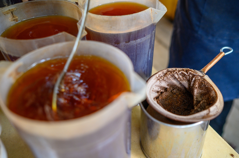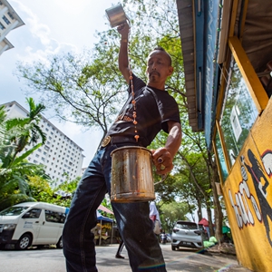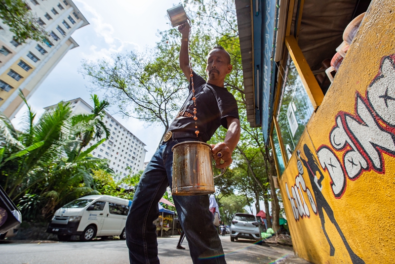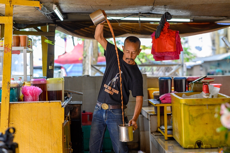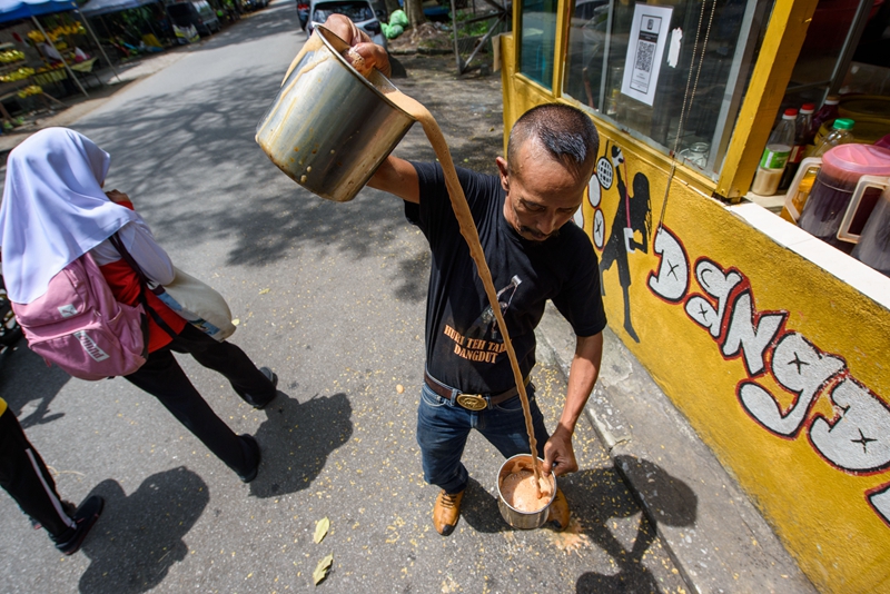 ↑5月18日,在马来西亚雪兰莪州的必打灵查亚,穆赫德·扎布里在制作拉茶。穆赫德·扎布里在必打灵查亚经营拉茶店已超过20年,他制作的拉茶深受当地居民喜爱。