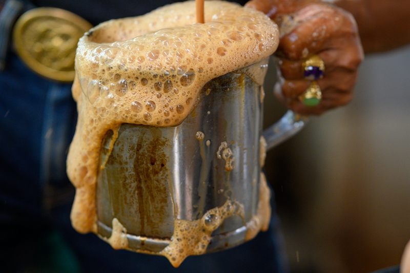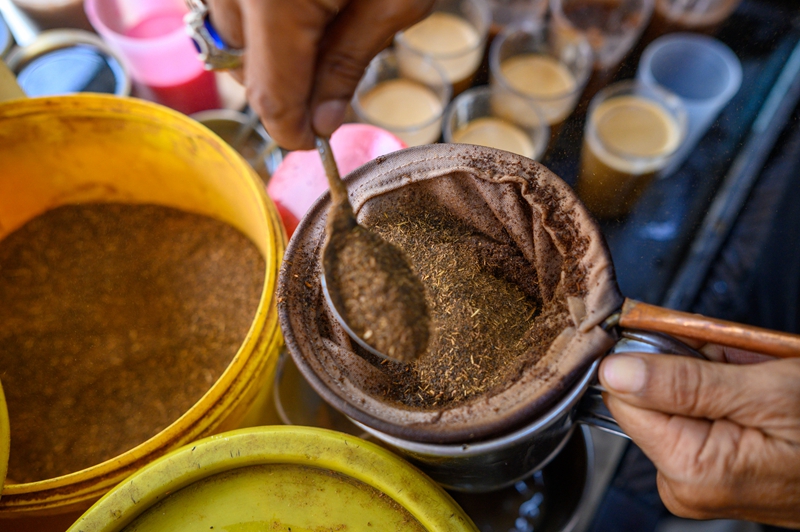 ↑这是5月18日在马来西亚雪兰莪州的必打灵查亚拍摄的制作好的拉茶。