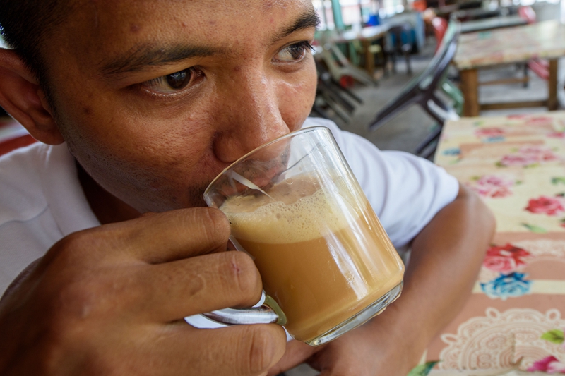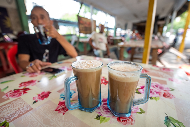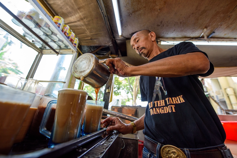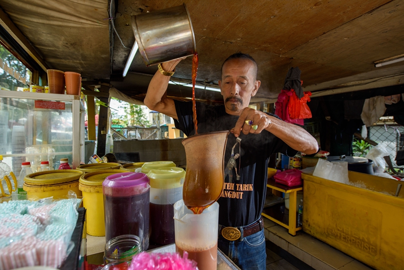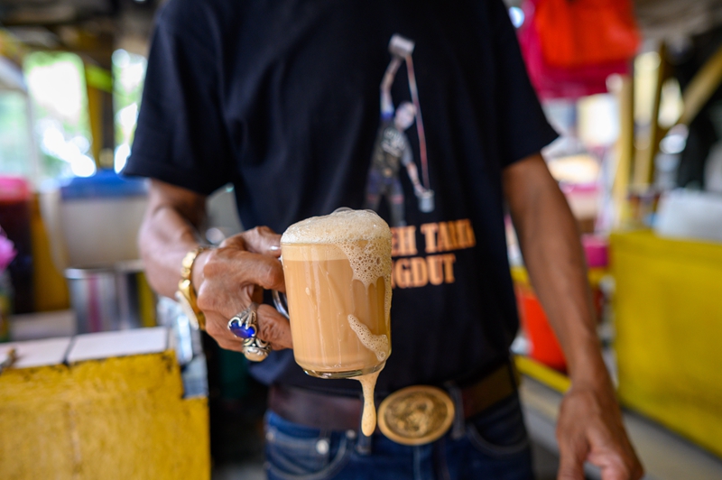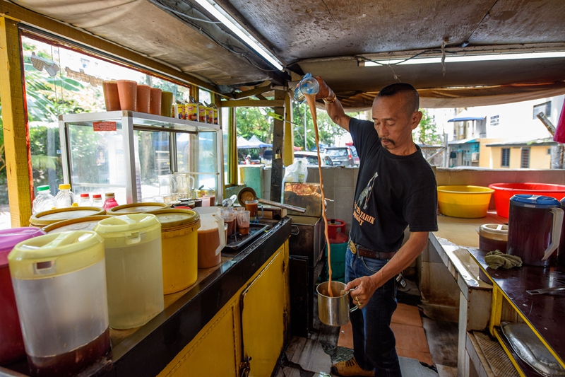 ↑5月18日,一名男子在马来西亚雪兰莪州的必打灵查亚饮用拉茶。