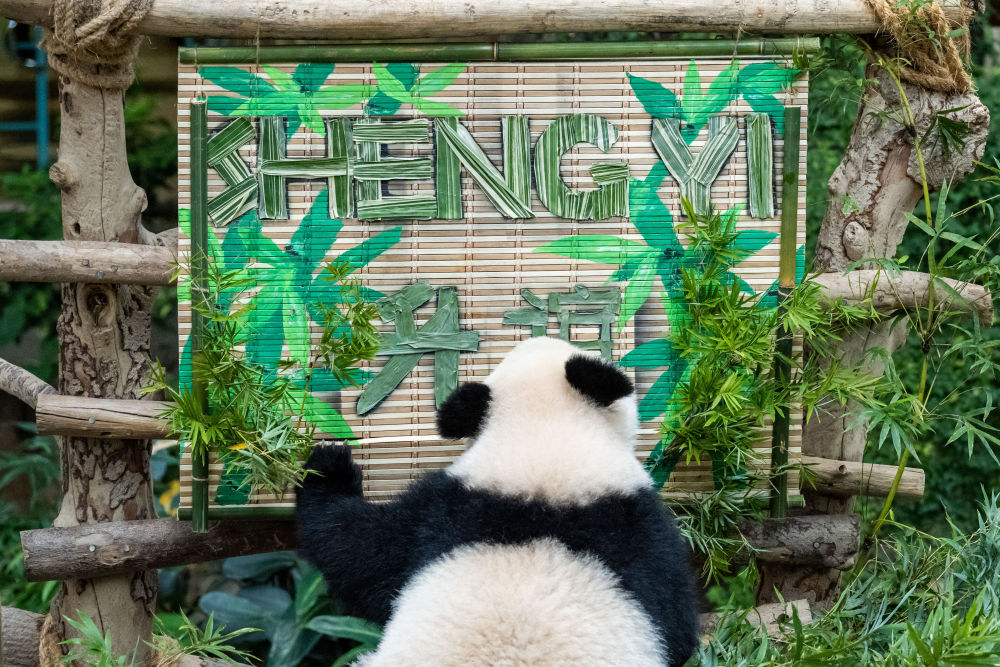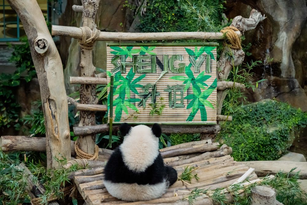 中国旅马大熊猫“靓靓”生下的第三只宝宝5月25日在马来西亚国家动物园正式取名为“升谊”。