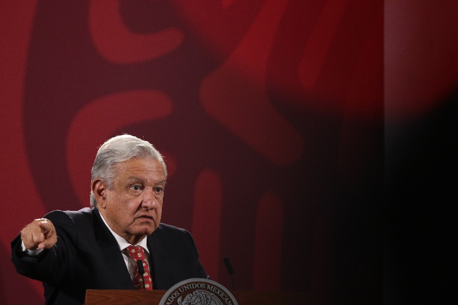 6月6日,在墨西哥首都墨西哥城国家宫,墨西哥总统洛佩斯出席新闻发布会。(新华社发,弗朗西斯科·卡涅多 摄)